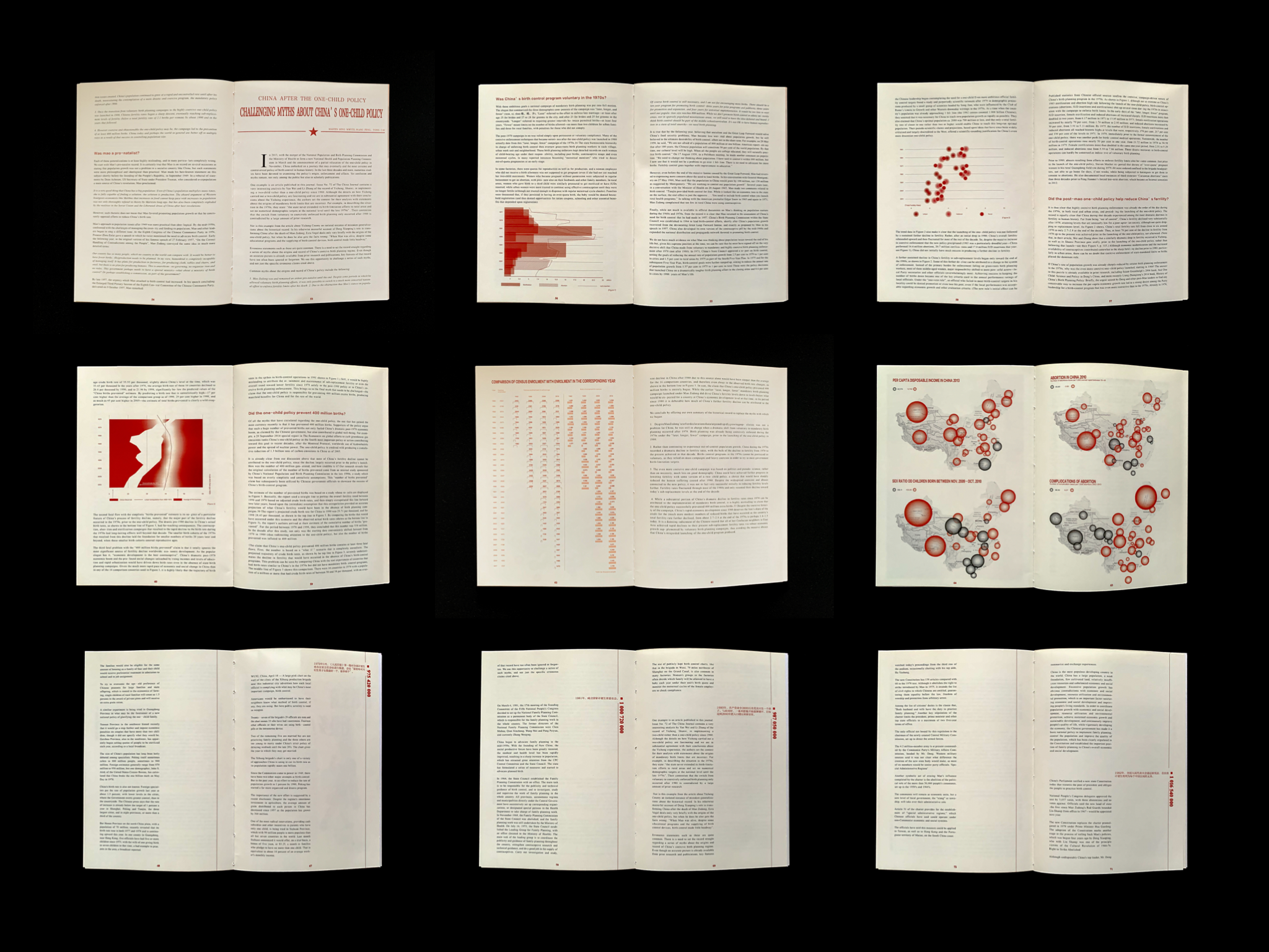 这本书采用了中国红头文件的格式,通过很多个不同的“通知”作为章节,向大家揭示了计划生育的面具,粉饰太平下的真实中国社会。最后我从我出生的每一个时刻选择一张照片去表达不明真相的群众在日常生活中的表现,在我们不知道的背后很多痛苦正在发生。